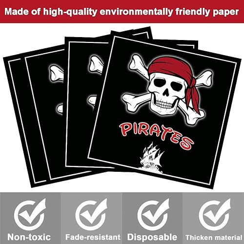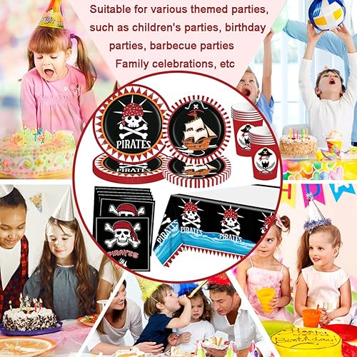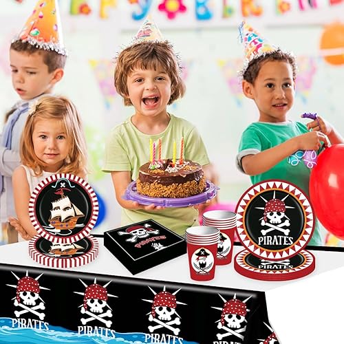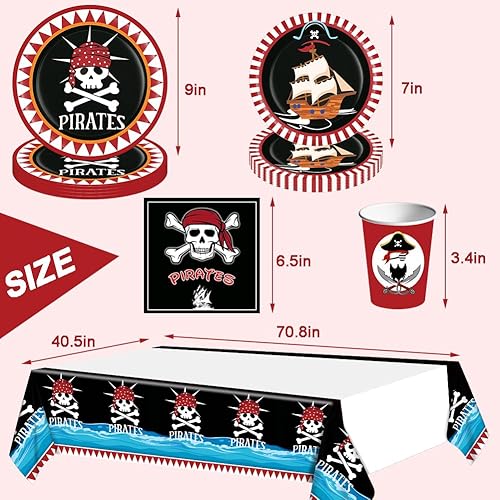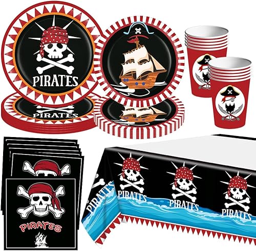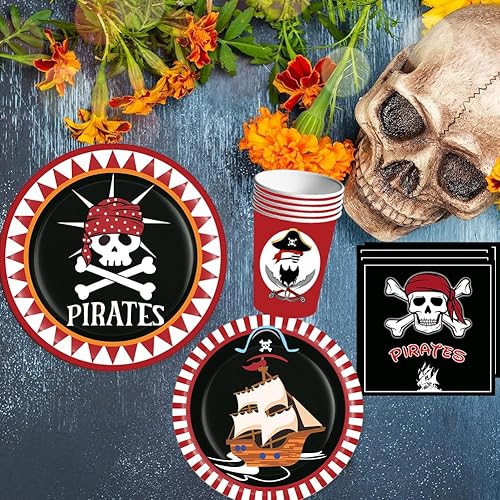 51 Pcs Vaisselle Thème Pirate, Ensemble de Vaisselle Pirate pour 10 Personnes, Assiettes de Fête Pirate, Vaisselle en Papier, Pirate Anniversaire, Vaisselle Pirate Fête D'anniversaire Fournitures