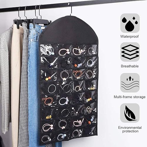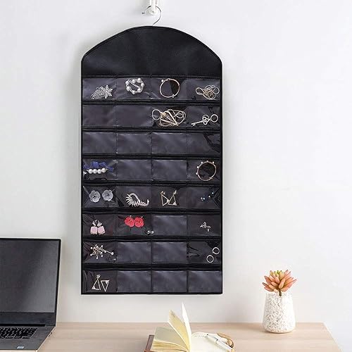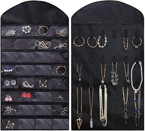LYTIVAGEN Organisateur de Bijoux Suspendus Rangement Bijoux à Suspendre Double Face Sac de Rangement à Bijoux Noir pour Collier/Lunettes de Soleil/Boucles d'oreilles (46 * 82cm)