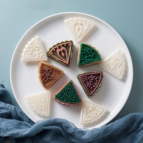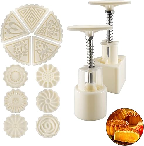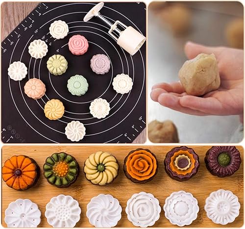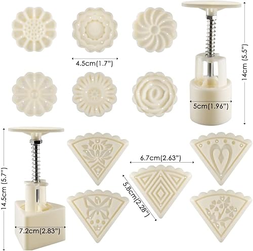 NewWe Lot de 2 moules à gâteau de lune avec 11 tampons à biscuits faits à la main en forme de fleur ronde et triangulaire - Accessoires de pâtisserie pour gâteaux, biscuits, fondants, desserts