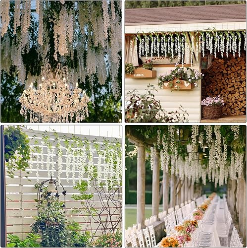 JINXIAN 12 Pièces Guirlande de Plante Artificielle 42.5 in Fleurs de Glycine Artificielle Mur de Fleurs Artificielles pour Mariage Saint Valentin Fleurs Artificielles Deco