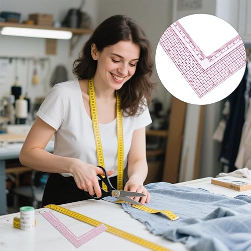 lasuroa Règle Équerre en L pour Couture, 90 Degrés Transparente Plastique Tailleur Outils Mesure Couture Règle Angle Droit pour Tissu Modélisme et Matelassage Bricolage Usage Professionnel