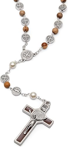 Mondo Cattolico Chapelet en perles rondes émaillées de Saint-Benoît et crucifix – Rosarios Catolicos Chapelet en pierre Paesina