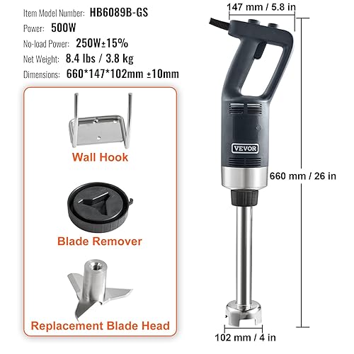VEVOR Mixeur Plongeant 500 W Mélangeur à Main Immersion Commercial Robuste 660 mm Vitesse Variable Lame en Acier Inoxydable 304 Mixeur Portable Polyvalent pour Soupe Smoothie Purée Aliments pour Bébés