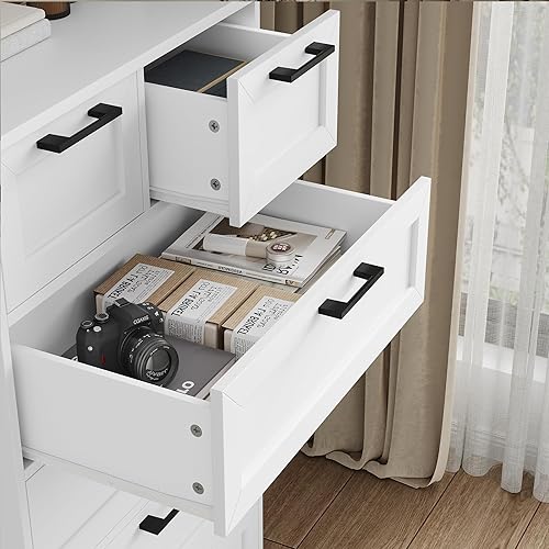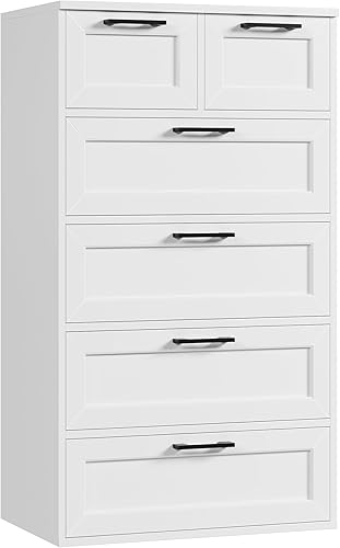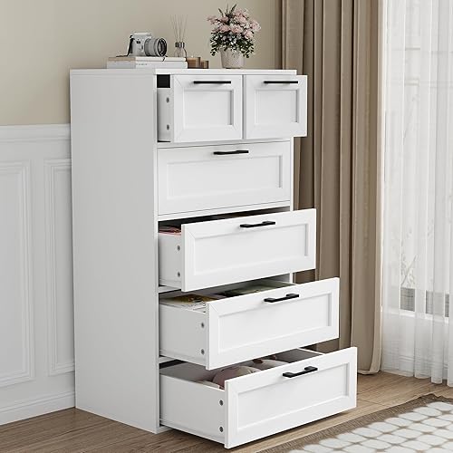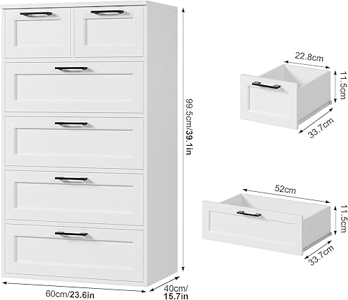 HOCSOK Commode 6 Tiroirs, Bois Armoire Chambre à Tiroirs, Haute Meuble de Rangement pour Salon, Chambre, Couloir, Blanche, 40 x 60 x 99,5