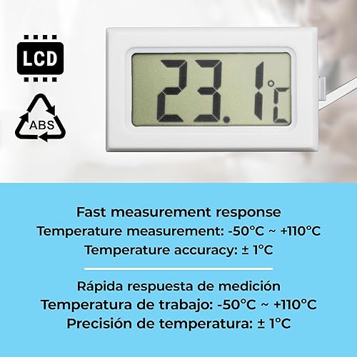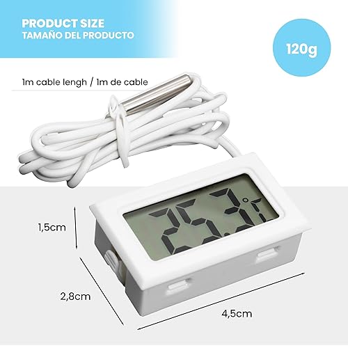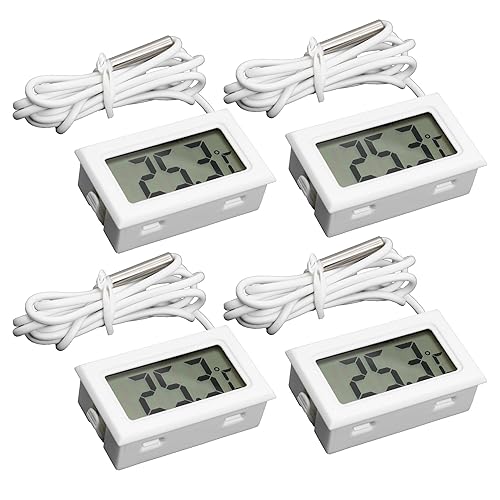 CHEFINLUX Mini Thermomètre Numérique Sonde 4 Pack Idéal pour Cuisine, Réfrigérateur, Aquarium, Extérieur, Intérieur, Thermomètre de Cuisine, Thermomètre Numérique, Blanc