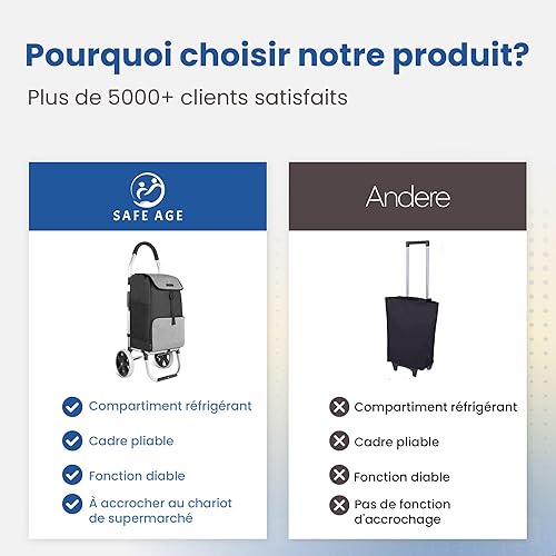 Chariot de Courses Safe Age® avec Compartiment réfrigérant et Fonction Diable - Chariot de Courses - Chariot - Pliable
