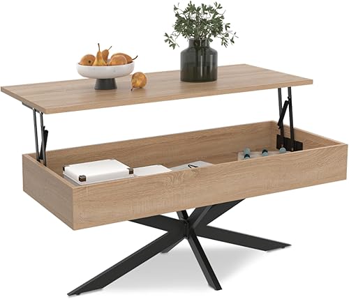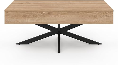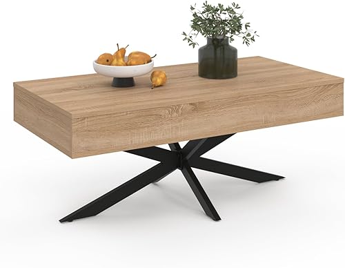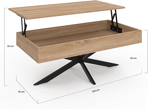 IDMarket - Table Basse rectangulaire Alix 100 cm Plateau relevable Pied araignée Bois et Noir