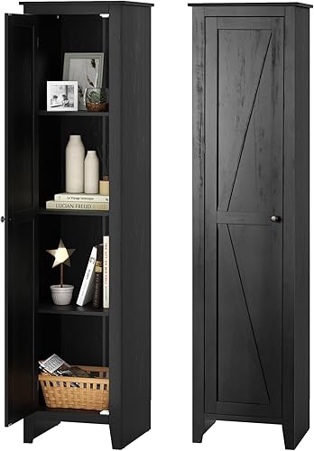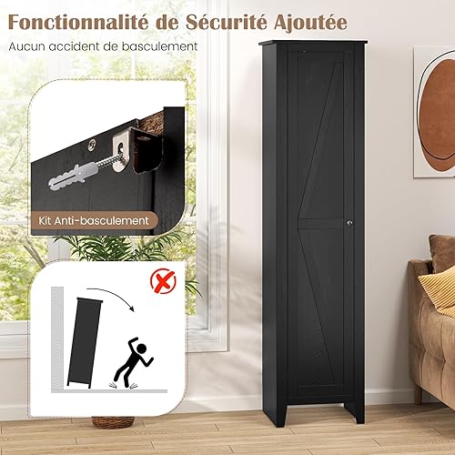 COSTWAY Armoire de Salle de Bain de 180 cm de Haute, Meuble de Rangement, Colonne, 4 Étagères, Placard à Porte, Gain de Place, Armoire Étroite pour Chambre, Salon, Salle de Bain (Noir)