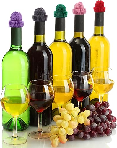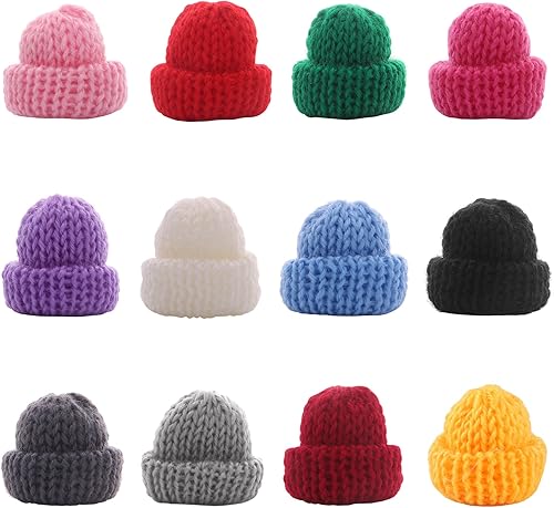 Niuhong 24 Pcs Décoration Bouteille Vin Mini Chapeau Bonnet Tricoté Ornements Chapeaux Fête Miniatures Artisanat Chapeau Peluche Décoration Tricotés Noël Décorations Fournitures d'Artisanat