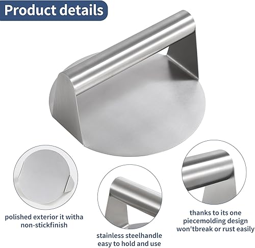 Presse Burger en Acier Inoxydable 304-5,5 Pouces, Idéale pour Smash Burger et Steak Haché