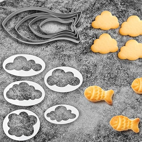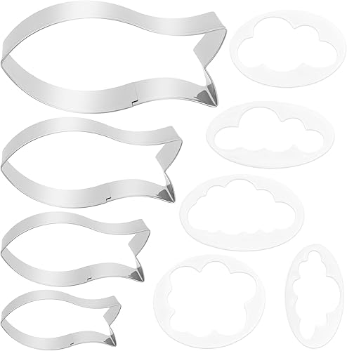 Lot de 4 emporte-pièces en forme de poisson, emporte-pièces en forme de poisson, emporte-pièces pour communion, biscuits en acier inoxydable et 5 emporte-pièces nuages, pour la pâtisserie, le