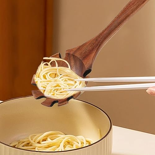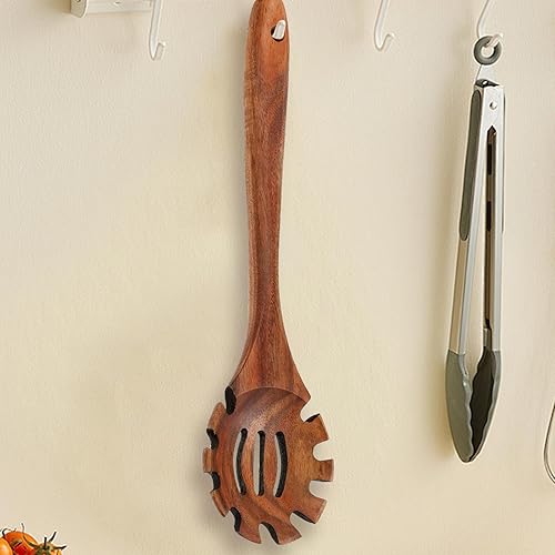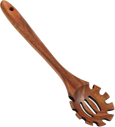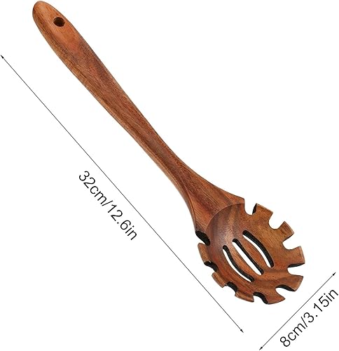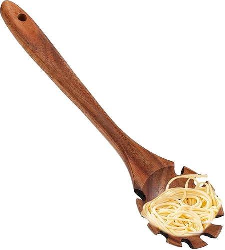 Cuillère à spaghetti en bois, cuillère à spaghetti, 32,6 cm, ustensiles de service à pâtes à suspendre à la main, cuillère à spaghetti en bois, louche à pâtes avec dents pour la cuisine