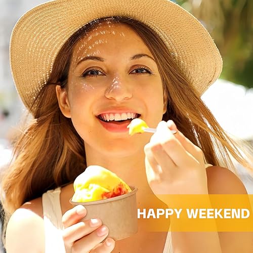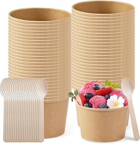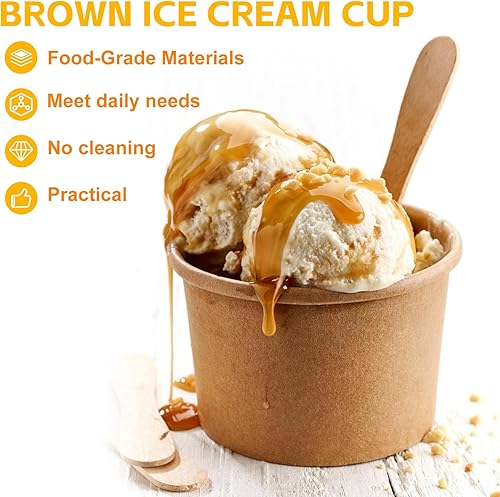 Lot de 50 coupes à glace, en carton, écologiques, universelles, 240 ml, avec 50 cuillères, en carton, compostables, marron, pour glace, dessert, amuse-bouches