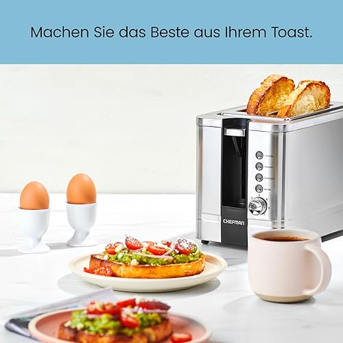 Chefman Grille-pain en acier inoxydable avec 7 réglages de bronzage, fentes extra larges pour bagels, fonctions de décongélation/réchauffement/arrêt, tiroir à miettes amovible, 925 W, 240 V, argent