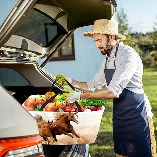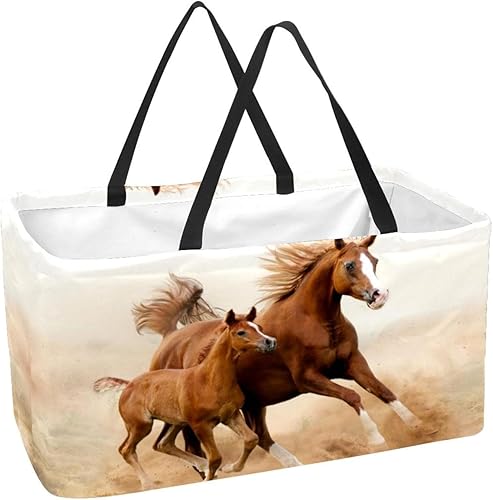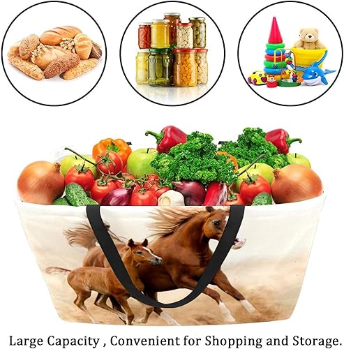 Panier à provisions réutilisable avec chevaux et animaux, panier à linge, sac fourre-tout pour pique-nique, courses