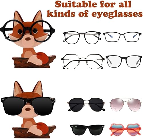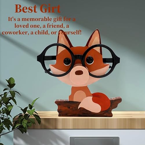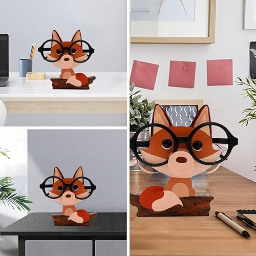 SIRLOMU 1 Bloc Support de Lunettes en Bois Sculpté Renard, Puzzle 3D en Bois, Présentoir à Lunettes de Soleil, Cadeau Unique, Décoration de Bureau pour Maison ou Bureau (13x11x3,5cm)