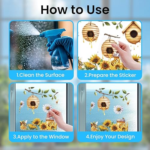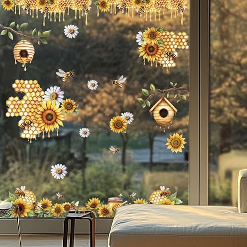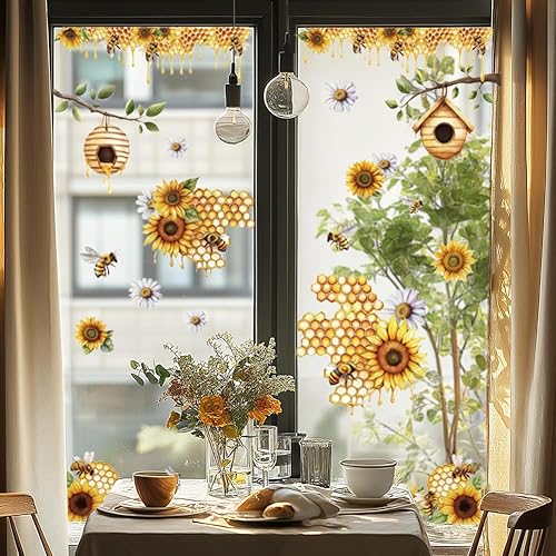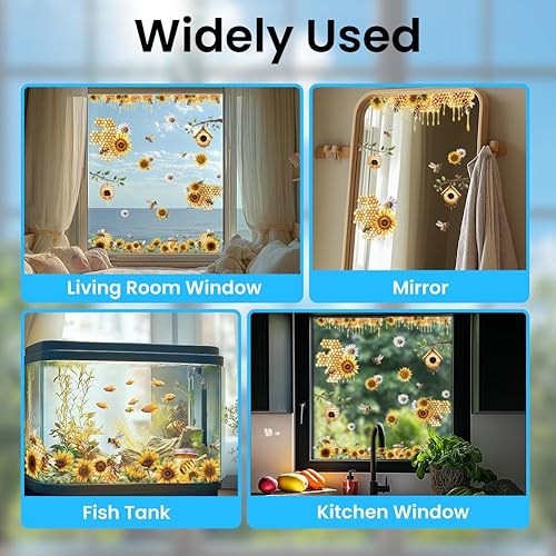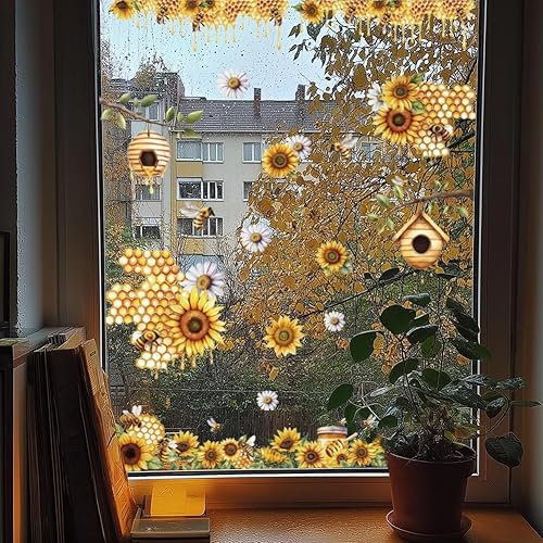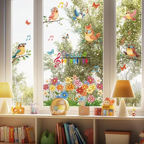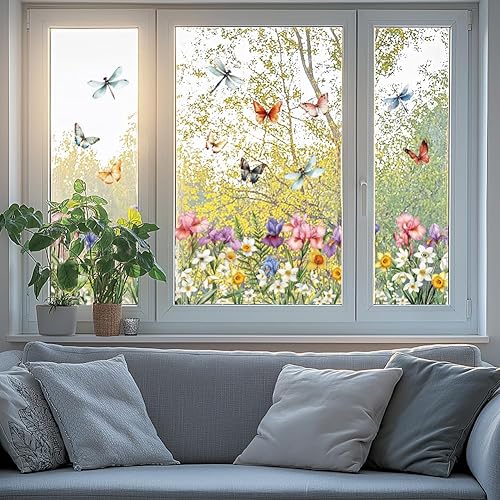 ANATTASOUL Stickers Fenetre Fleurs et Papillons Autocollant Fenetre Fleurs Printemps Appliques Réutilisables de Porte Vitre Fenêtre en Verre Antistatique Double Face