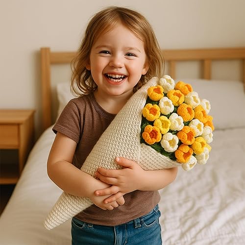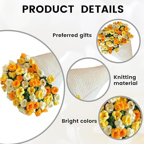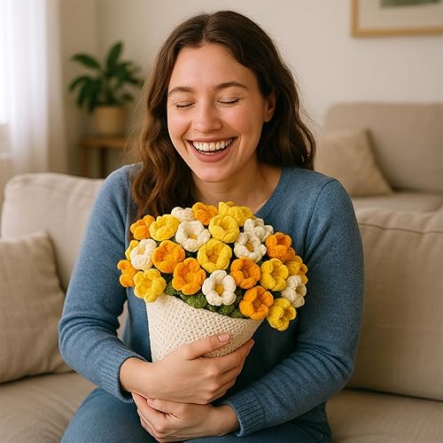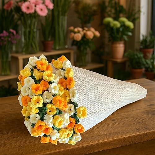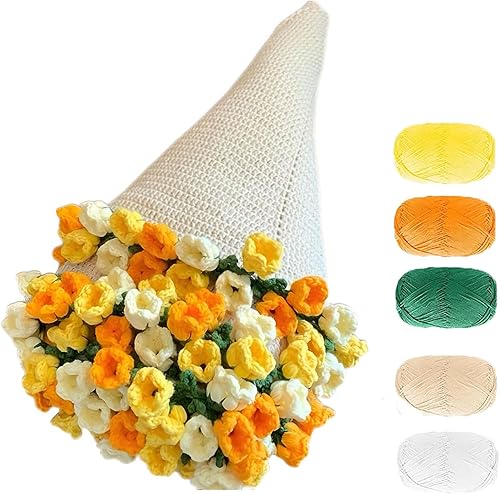 GETJOY 70 x 70 cm Couverture de bouquet de fleurs à faire soi-même avec neuf écheveaux de fils, couverture de bouquet de fleurs au crochet, douce et légère, cadeau romantique pour la fête des mères