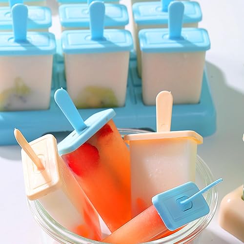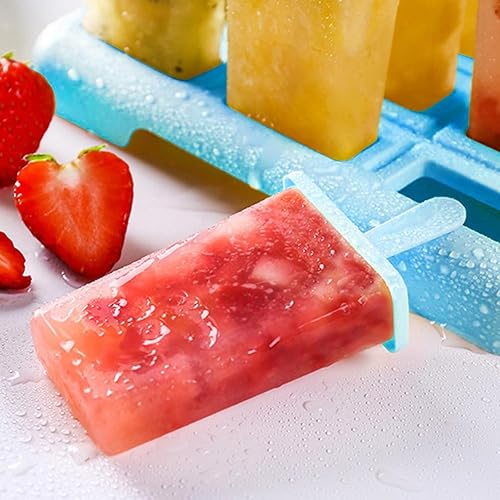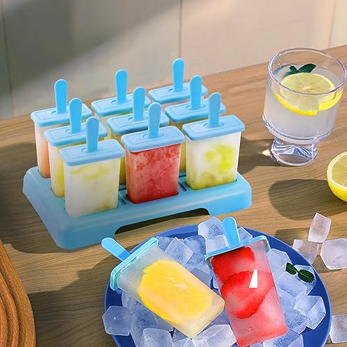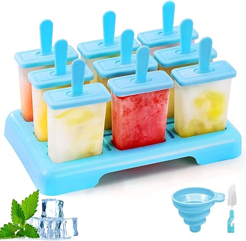 Moule à Glace en Silicone 9 Pièces, Réutilisable, avec Brosse de Nettoyage et Entonnoir Pliable en Silicone pour Préparer de Délicieuses Crèmes Glacées (Bleu)