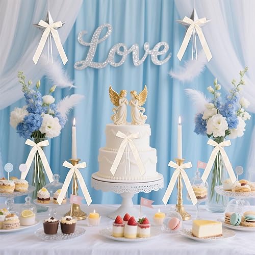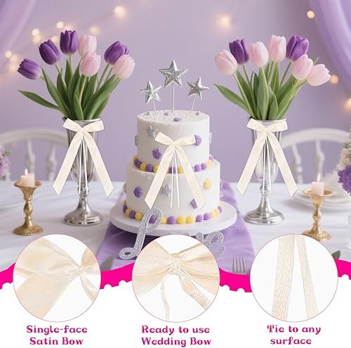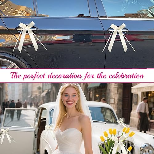 SUpoetry 50 Pièces Noeud Voiture Mariage Blanc, Noeud Voiture Mariage, Fait à la Main Noeud Voiture Mariage, pour Décorer Fête Mariage Cadeau Anniversaire Voiture Cheveux Bouquet (Beige)