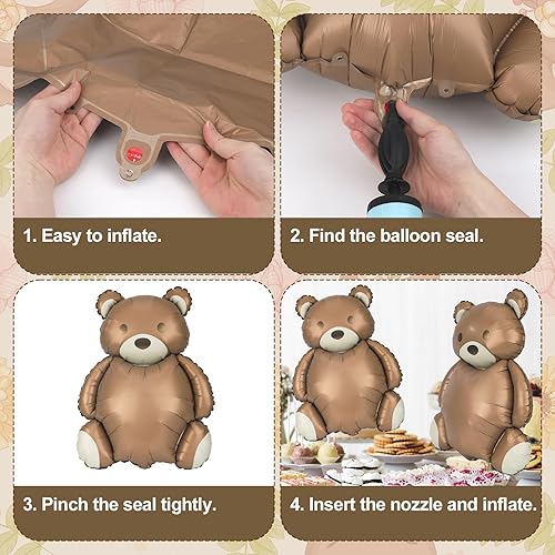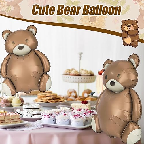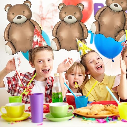 lasuroa 3pcs Ours Ballons, Grands Ballons en Foil Mat Ours pour Baby Shower Décorations Premier Anniversaire Ferme Animaux Zoo Jungle Safari Thème Fournitures Fête