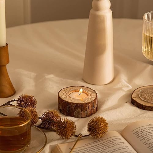 12 Pièce Bougeoir en Bois, Support de Bougie, Chandelier Votive, Support de Bougie Décoration, pour Centre de Table de Mariage, Halloween, Fête de Noël, Décoration d'intérieur (2,5 x 6 CM)