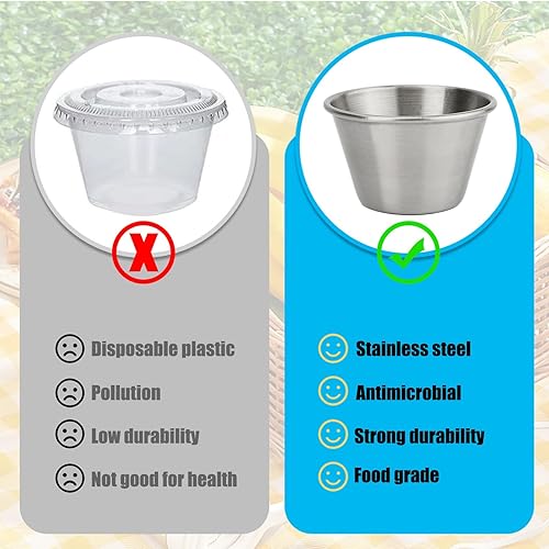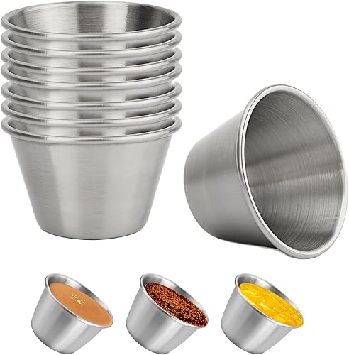 CTForest Lot de 8 gobelets à sauce en acier inoxydable - Pour ketchup, moutarde, sauce chili, vinaigrette (argent)