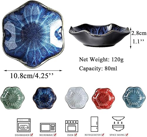 Bols à Céréales, 5 Pièces Bol à Tapas Sauce Apéritif Snack Bowl en Porcelaine Céramique, Coupe à Dessert Taille Petite Plats Service Vaisselles, Japonais Assiette Creuse à Soupe Fruit Salade