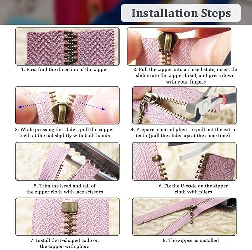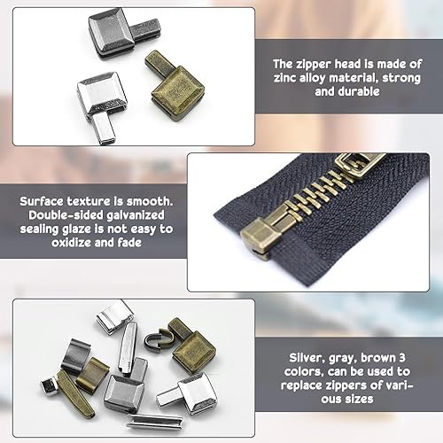 DTYGUIXE 24 Ensembles Fermeture Eclair Réparation Fermeture à Glissière Kits de Réparation de Fermeture Eclair en Alliage de Zinc Curseur Fermeture Eclair pour Vêtements 4 Tailles : #3 8