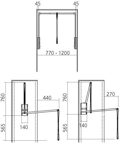 Rangez - Penderie Lift Relevable L 770-1200 mm Noir Métal, Plastique