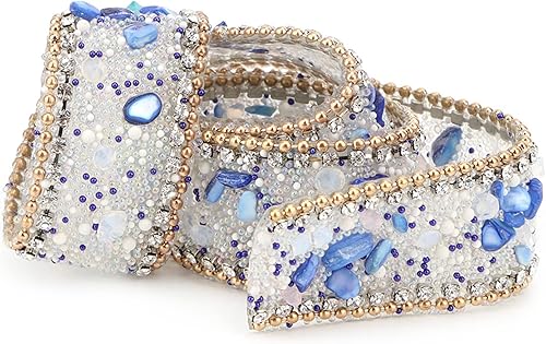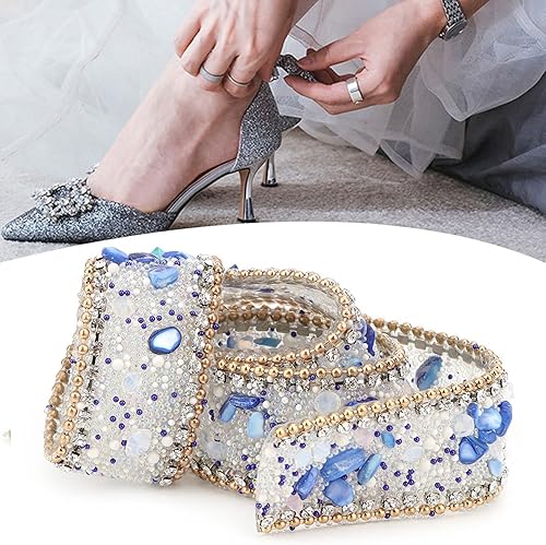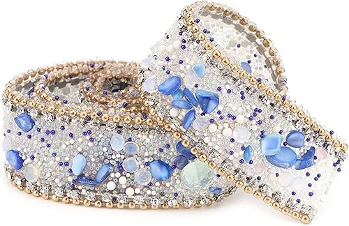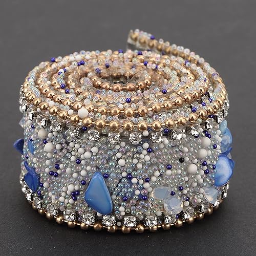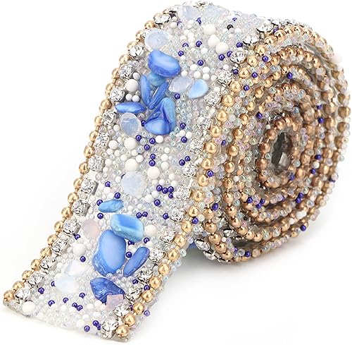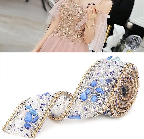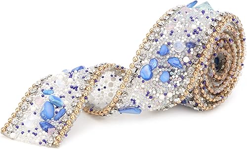 Diamant Strass Bandes Bling Rubans Rouleau Bandage Ceinture Enveloppe Diamant Maille Wrap Rouleau Cristal Strass pour GâTeau de Mariage Décorations de Fête(Chaîne de perles d'or en pierre bleu roi)