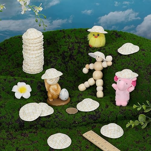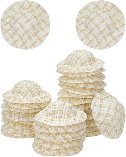 FINGERINSPIRE 30Pcs Mini Chapeau en Paille Imitation Tricot de 50mm de Diamètre Rond et Plat en Papier avec Tissu Petit Chapeau Couleur Mocassin pour Loisirs Créatifs Peluches et Miniatures