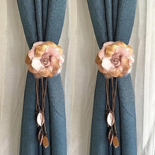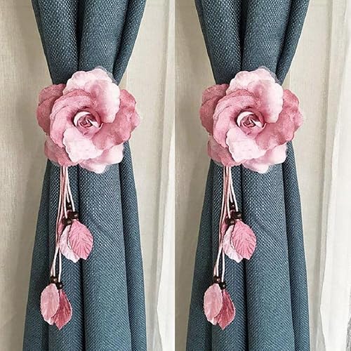 qbodp 2 Pièces Embrasses À Rideaux, Embrasses À Fleurs pour Rideaux, Embrasses De Rideaux Décoratives Élégantes, Attaches De Rideaux, Corde Décorative pour Chambre De Fille, Rose