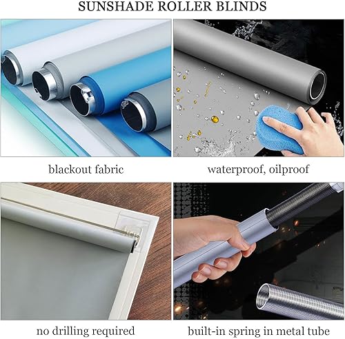 Stores Enrouleurs Pare-soleil, Stores À Rouleau Occultants Protection Solaire 99%, Rideaux Occultants Sans Perçage, Stores D'intimité Temporaires Pour Fenêtres Et Portes,grey-105x200cm/41*79in