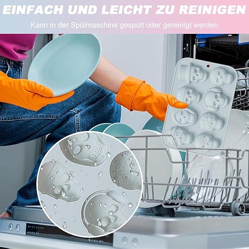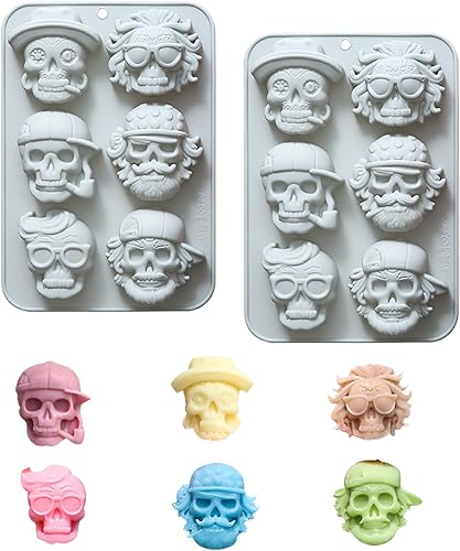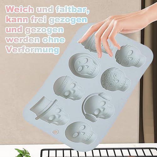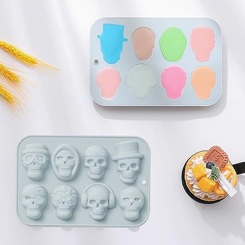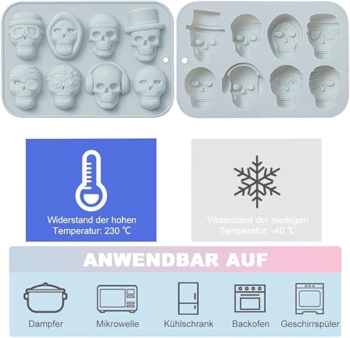 Fyfjur Crâne Moule Chocolat Silicone, 2 Pièces Moule à Chocolat Halloween, Moule en Silicone Chocolat, Moules Silicone pour Bonbons, Chocolat, Gelée (Bleu, 20,9 * 14,4 * 3,3cm)
