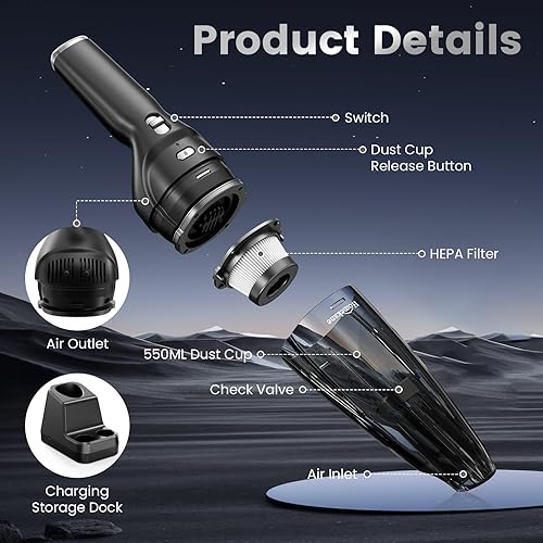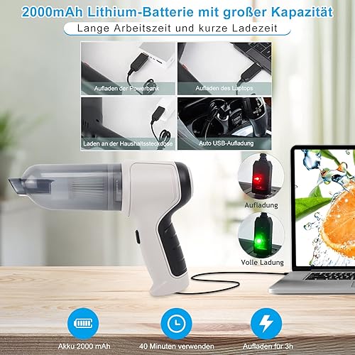 HOMEKANE Aspirateur à Main, 10000Pa Mini Aspirateur sans Fil Portable, Multifonctionnel Aspirateur Voiture Puissant sans Fil, pour Voiture Animaux Maison Car