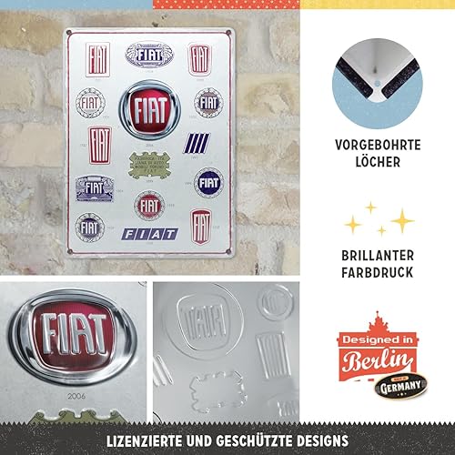 Nostalgic-Art Plaque vintage, Fiat – Logo Evolution – Idée de cadeau pour fans de voitures, en métal, Design retro pour la décoration, 30 x 40 cm 23297