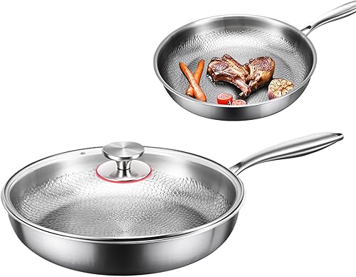 Pan martelé en titane, Titane premium Titanium Enrobage antiadhésif Pan avec couvercle, ustensiles de cuisine compatibles et résistants aux rayures pour la cuisson à induction, poêle G-A-S ou cuisine