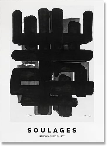 FIGMAN Pierre Soulages Affiche Noir Blanc Mur Art Pierre Soulages Imprime Pierre Soulages Toile Peinture pour Home Wall Decor Image 50x70cm Pas de Cadre