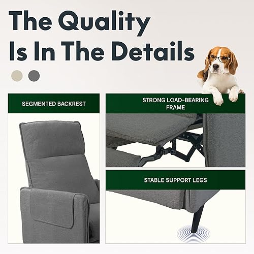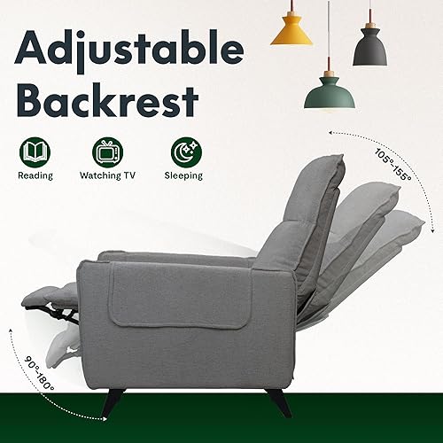 FLEXISPOT Fauteuil Relax, Pushback, Fauteuil TV Inclinable avec Dossier Réglable Jusqu'à 155°, Fauteuil de Couchage Manuellement avec Repose-Pieds dans Le Salon, Chambre, Gris
