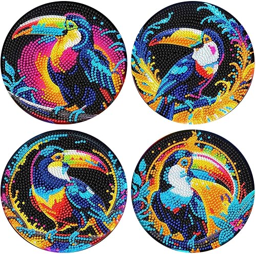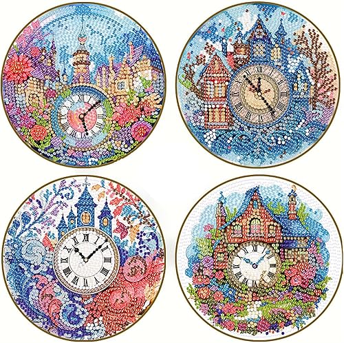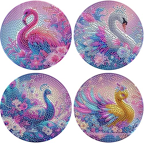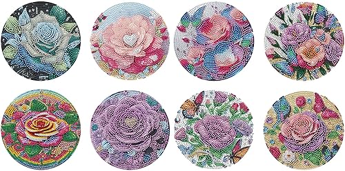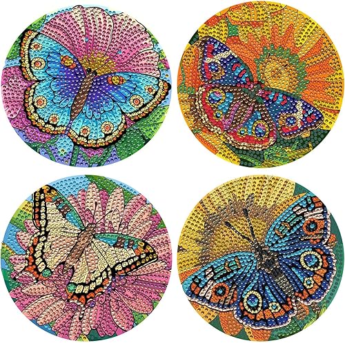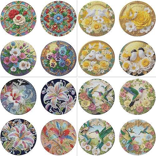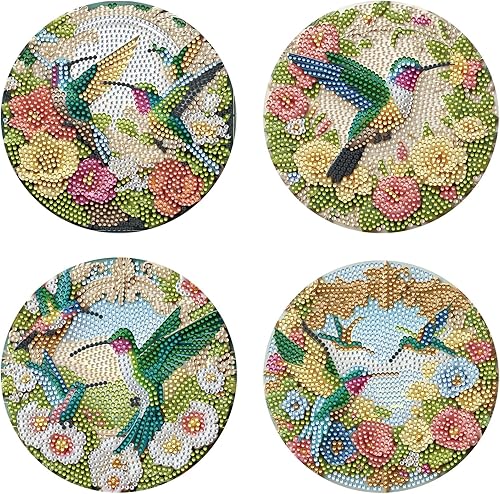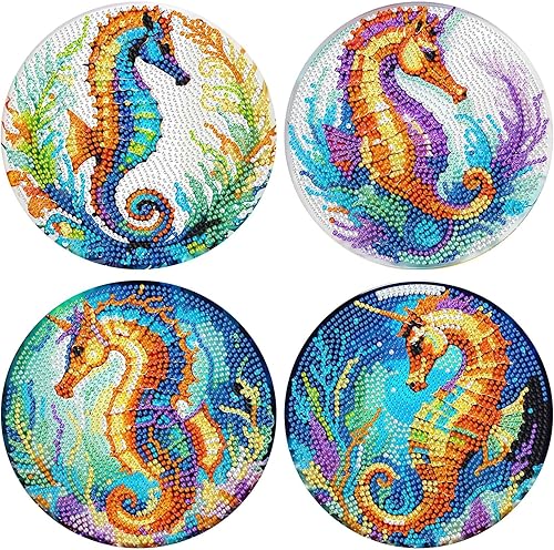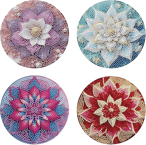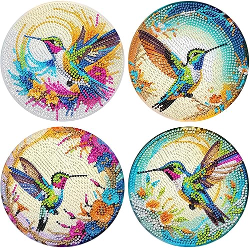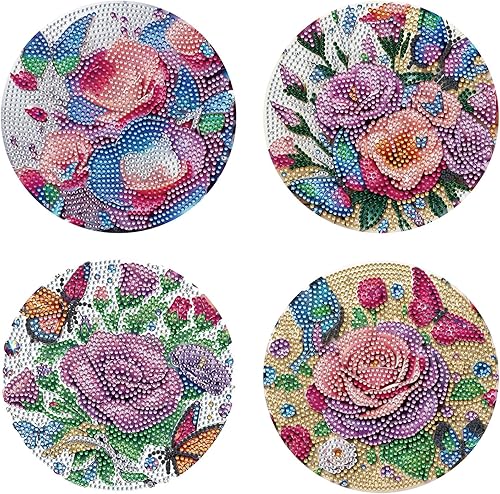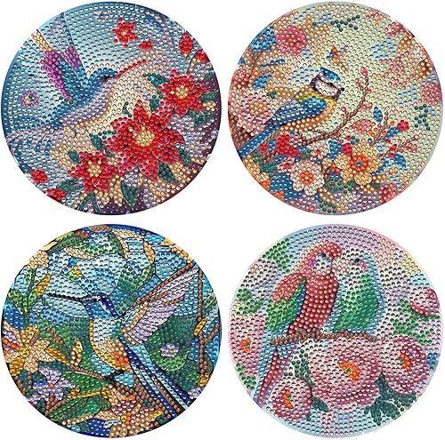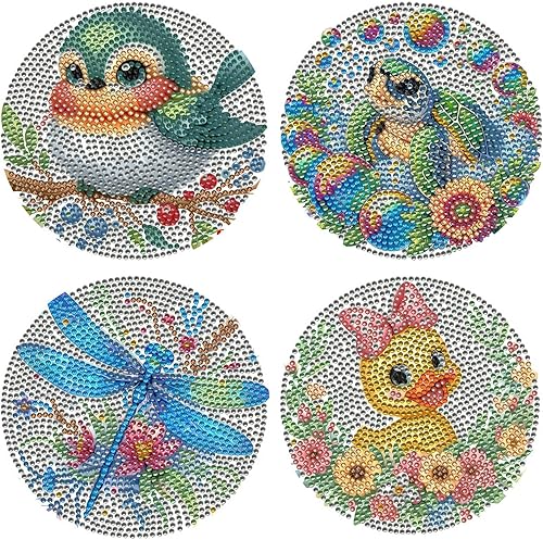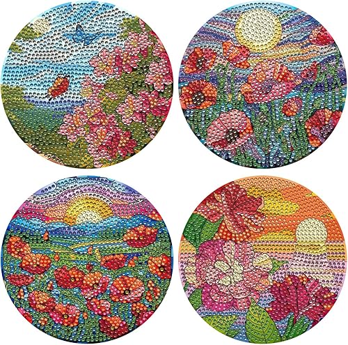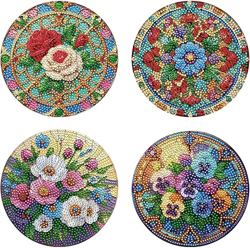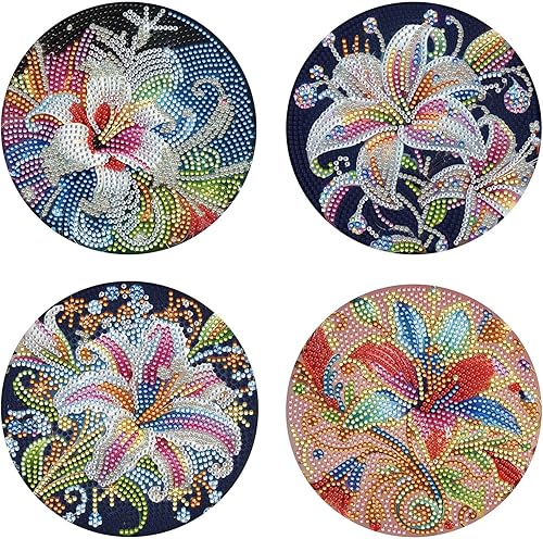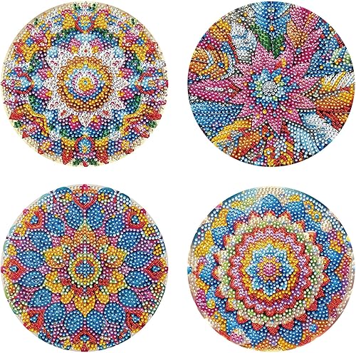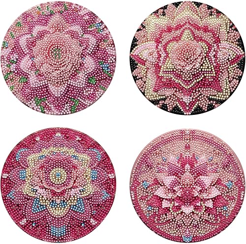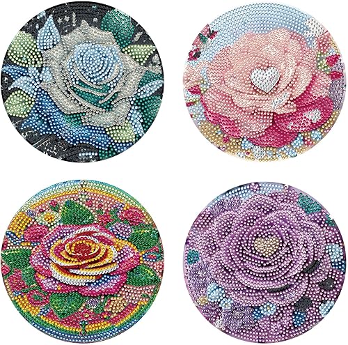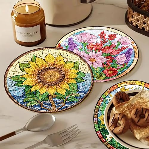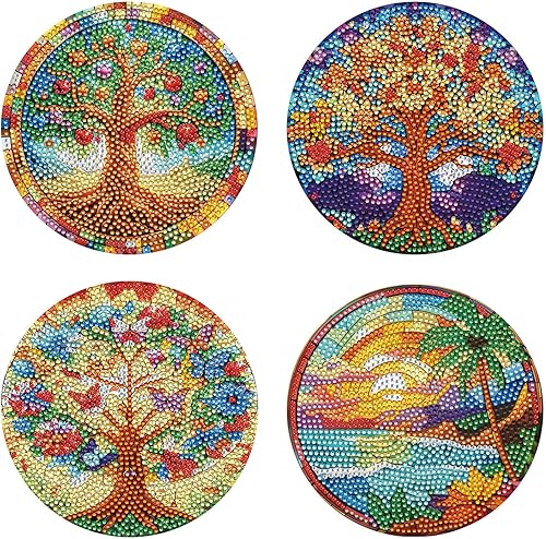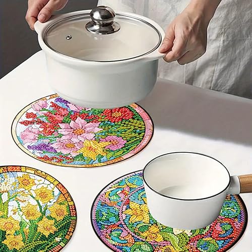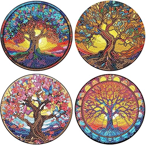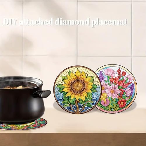 Lot de 4 sets de table ronds en bois, peinture diamant à faire soi-même, tapis de thé, sets de table de cuisine, présentoir à desserts, décoration de table d'intérieur pour cuisine, table à manger