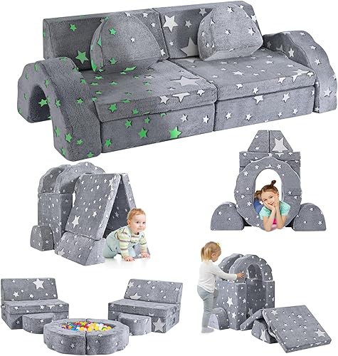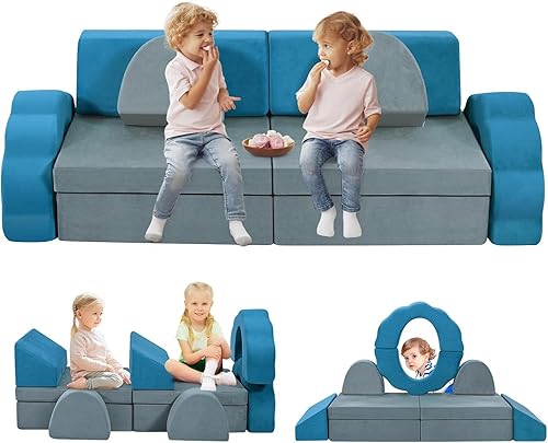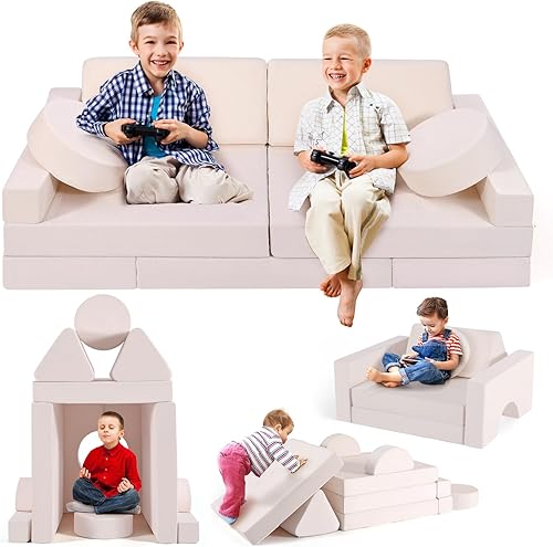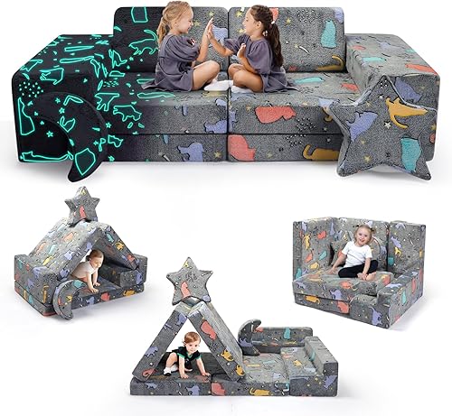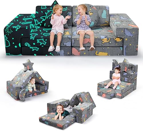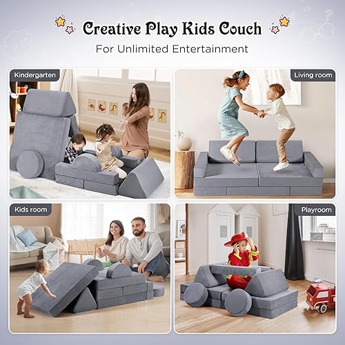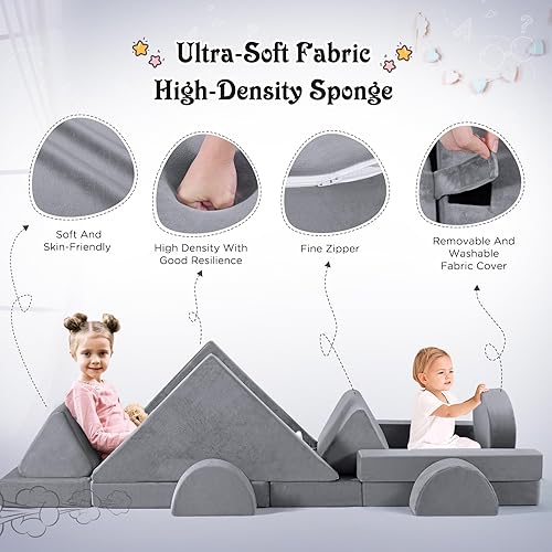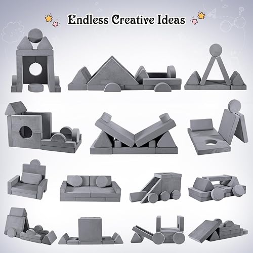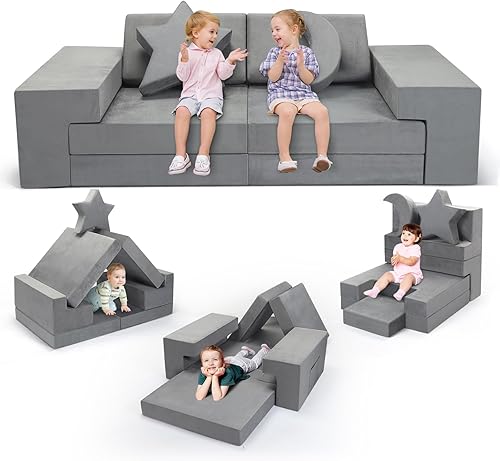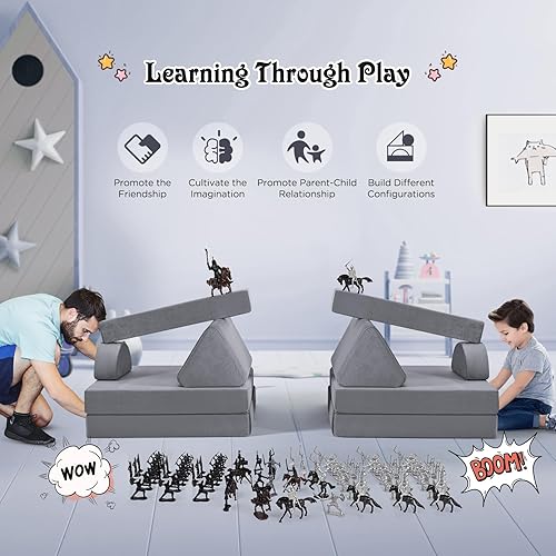 MINENICE Canapé pour Enfant, Bloc de Mousse, canapé modulaire, lit Pliable Amusant, pour garçons et Filles, Intelligence du développement (Gris-9)