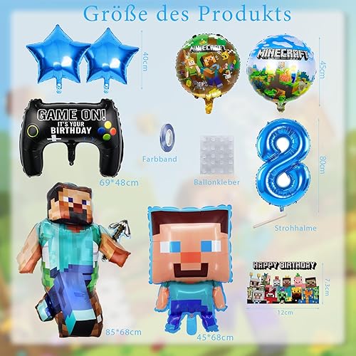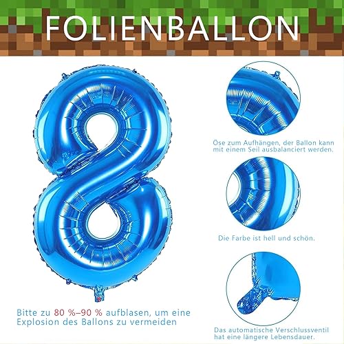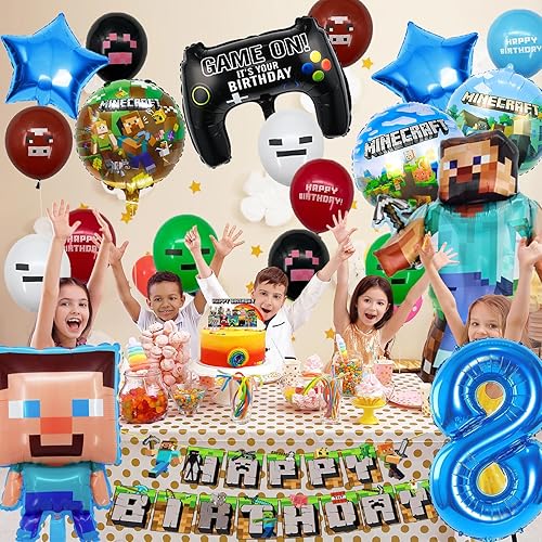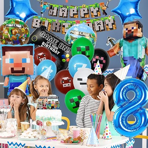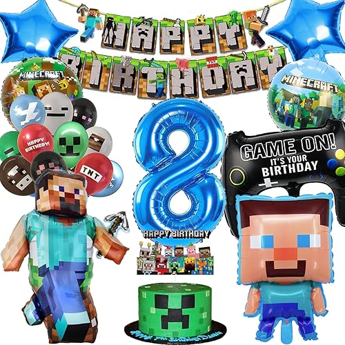 Décoration d'anniversaire pour garçon de 8 ans, décoration d'anniversaire pour garçon de 8 ans, avec guirlande Happy Birthday, décoration de gâteau et ballon en aluminium