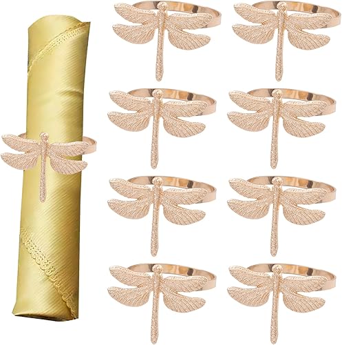 Ronds de Serviette en Métal 8 Pièces Ensemble de Ronds de Serviette en Métal Libellule Ensemble de Ronds de Serviette pour Fête de Mariage Banquet de Vacances Dîner de Noël Boucles de Serviette