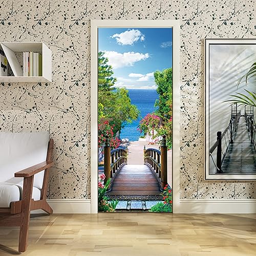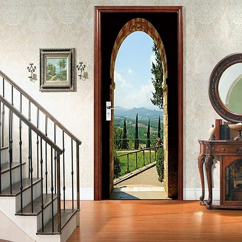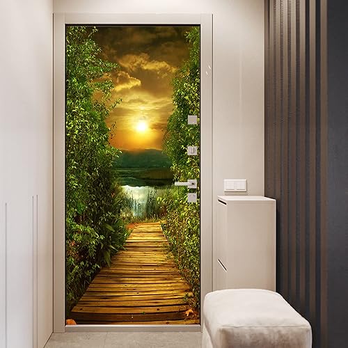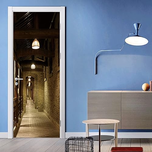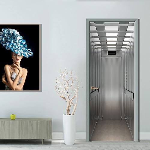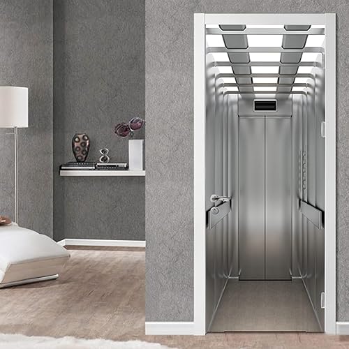 FLFK Ascenseur Autocollant Porte Affiche 3D pour Cuisine Chambre Salle de Bain Auto-adhésif Amovible Murale Décoration 77X200cm