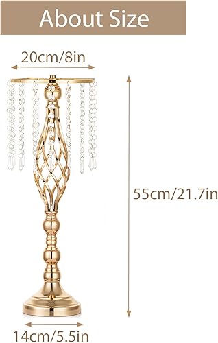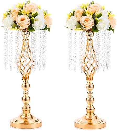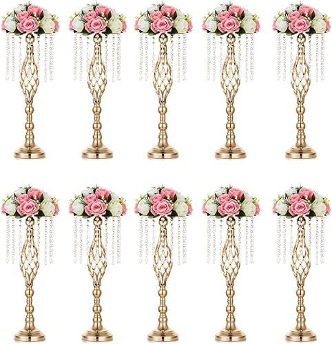 Sziqiqi 10 Pcs Centres de Table de Mariage Vases, 55 cm de Haut en Métal Or Vases avec Chaîne de Perles de Cristal pour Mariage, Arrangements de Fleurs Artificielles pour Fête Anniversaire Cérémonie