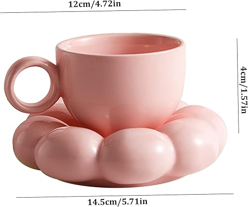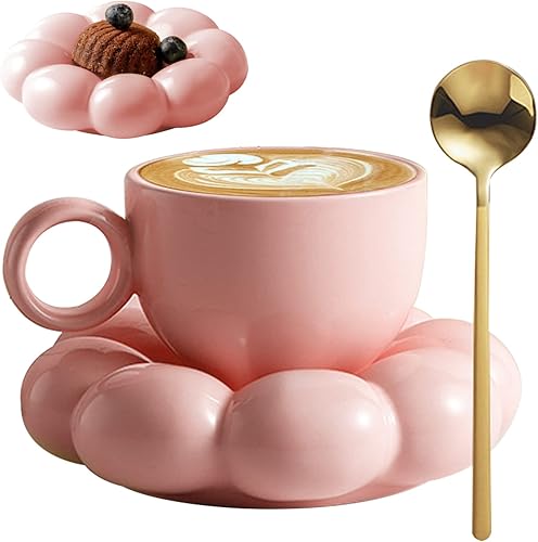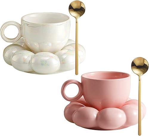 Jorzer Tasse à Café en Céramique Avec Cuillère - Voyage de Tournesol Nuage Avec Soucoupe 200ml - Ensemble pour Latte, Cappuccino, Thé Après-Midi - Blanc