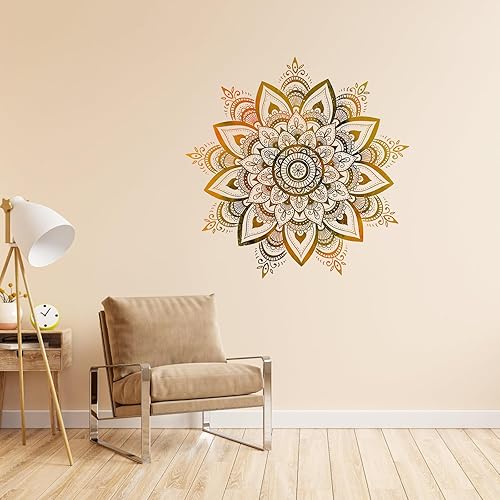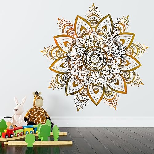 VOSSOT Grand Sticker Mural Mandala pour Chambre à Coucher - Or Boho Fleurs Décoration Murale - Style Boho Couloir Yoga