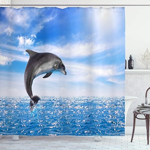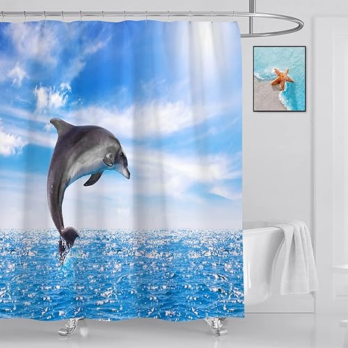 OCEUMACO Rideau de Douche 3D Motif Dauphin Mer Anti Moisissure Rideaux Baignoire Animaux Ocean Imprimé Extra Large Polyester Tissu Imperméable 240x200 cm Lavable Machine avec Anneaux - Bleu