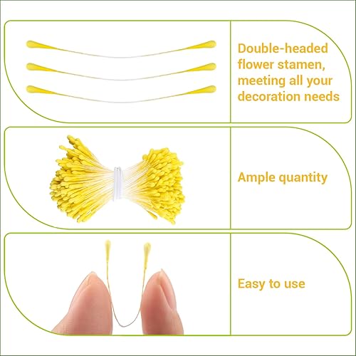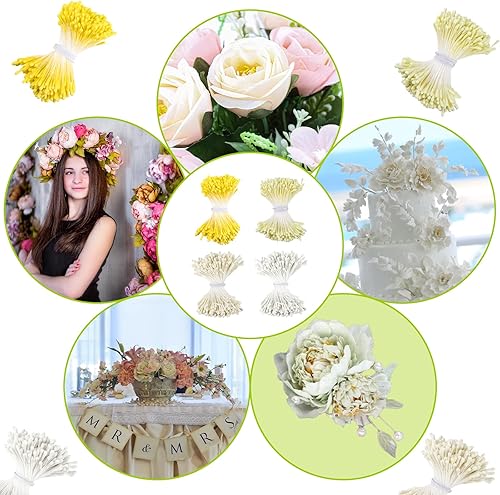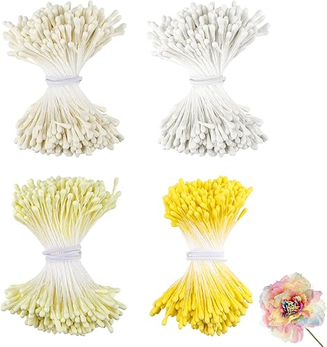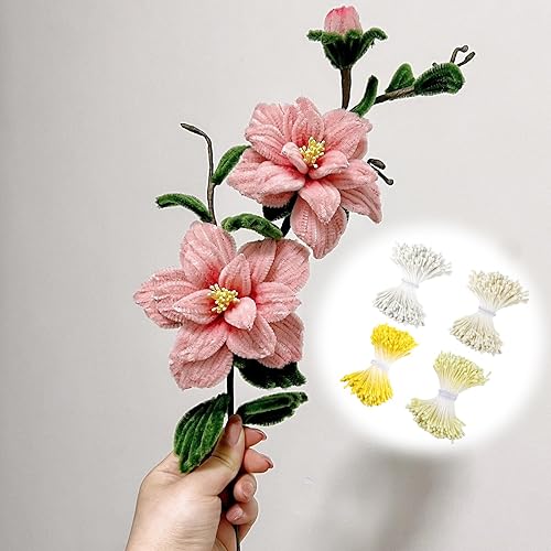 XRXYMQ Lot de 1400 cure-pipes en forme de fleurs - 4 couleurs - Pour travaux manuels - Double tête - Pistile - Jaune/crème/jaune clair - Blanc - Accessoires pour le bricolage, le bouquet, l'artisanat